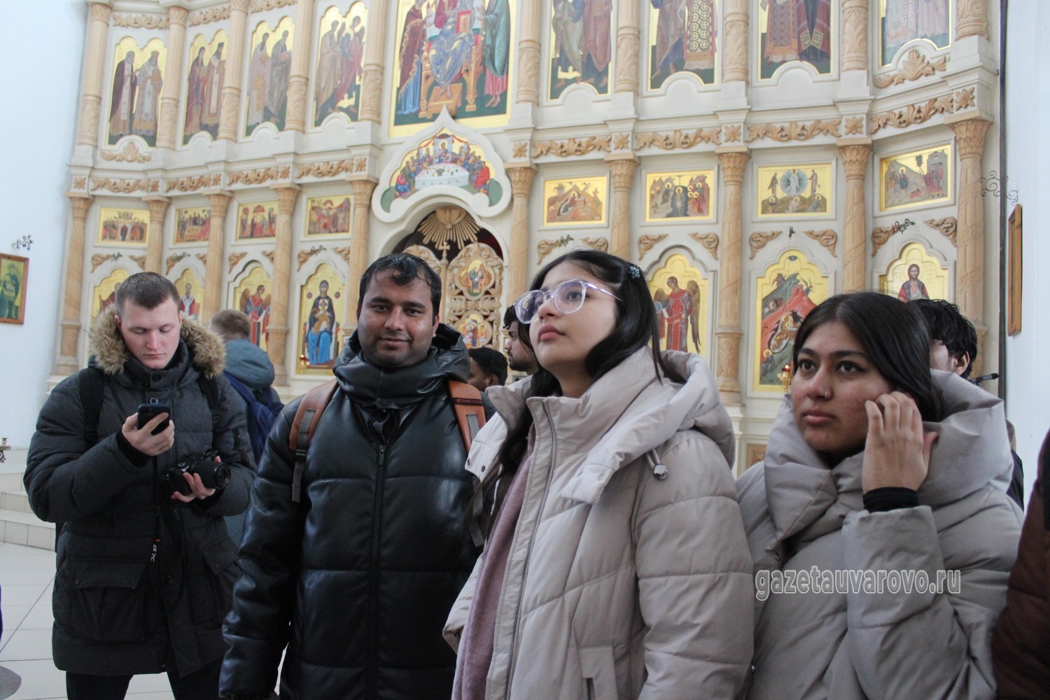Встретили студентов, как и полагается, — хлебом-солью сотрудники городского музея, затем гости побывали в Христорождественском кафедральном соборе, где могли наблюдать Таинство Крещения младенцев и увидеть старинную икону Николая Чудотворца.