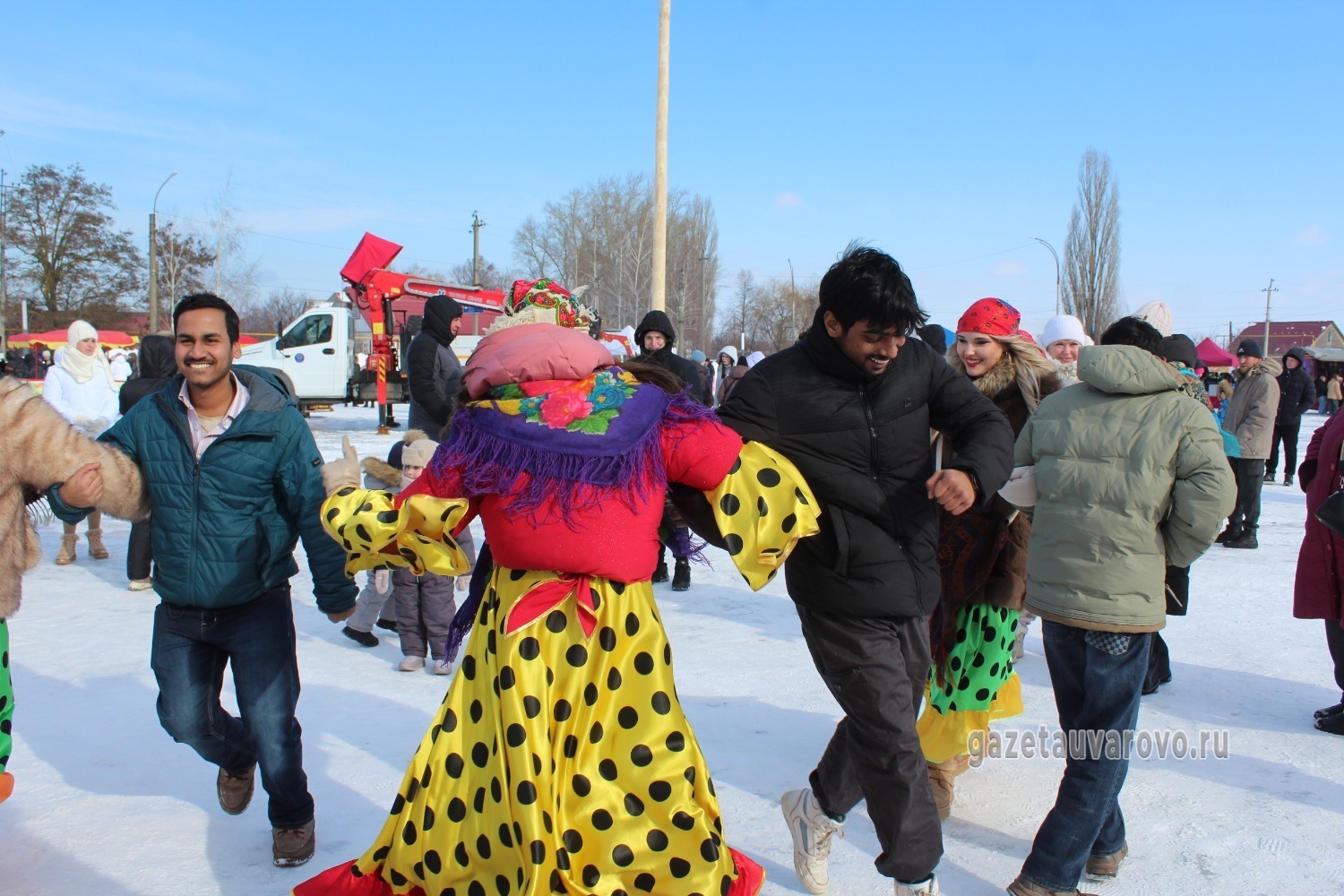 Сегодня, 21 февраля, в городе Уварово прощались с зимой. Проводить холода и встретить весну вместе с местными жителями приехали индийские гости. Разница в языках и культуре совсем не помешала юношам и девушкам от души повеселиться и узнать много нового.