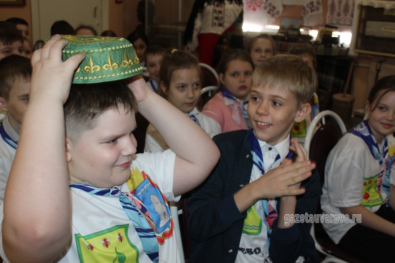 Ребята с удовольствием заучивали пословицы на татарском языке, играли в игру «Тюбетейка», под музыку передавая друг другу национальный головной убор и выполняя задания. Поделились они и своими познаниями о разных народностях, населяющих Россию.