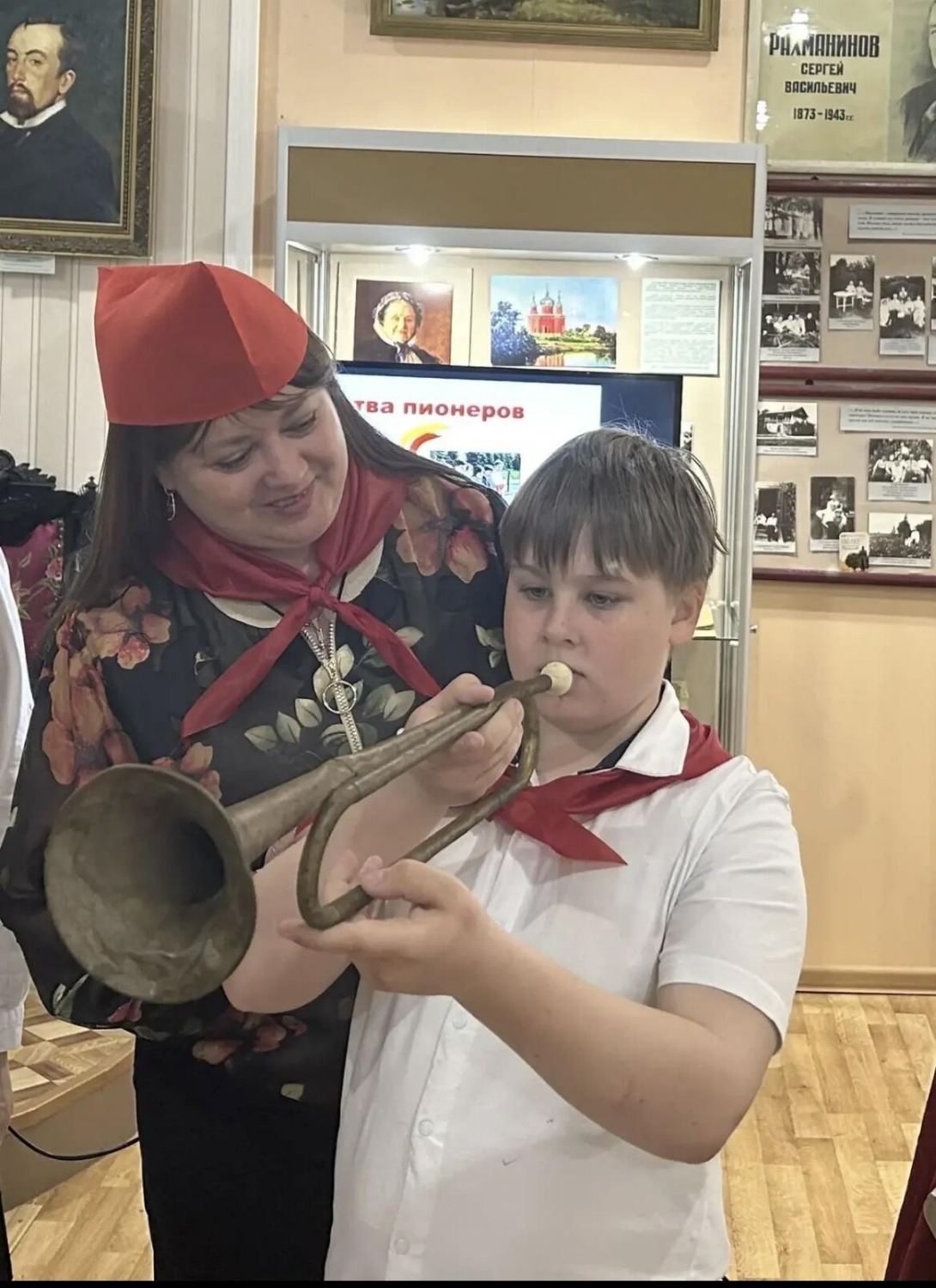 Ребята могли попробовать поиграть на горне и барабане.