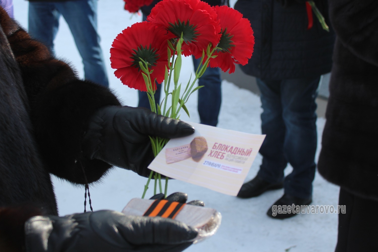 Символом блокадного Ленинграда стал 125-граммовый кусочек хлеба. Каждому участнику митинга уваровские волонтёры Победы вручили символический блокадный хлеб, как напоминание о ценности жизни.
