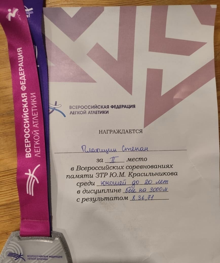 — Степан одержал победу на дистанции 1500 метров с результатом 3.58.12. Также Степан установил персональный рекорд и завоевал серебряную медаль на дистанции 3000 метров. Горжусь своим сыном, — рассказал отец атлета тренер-преподаватель Юрий Платицин.
