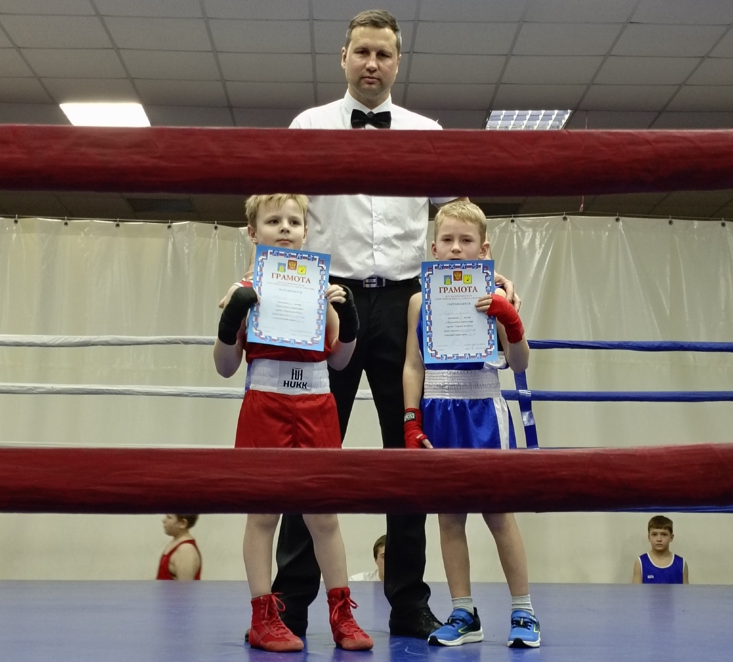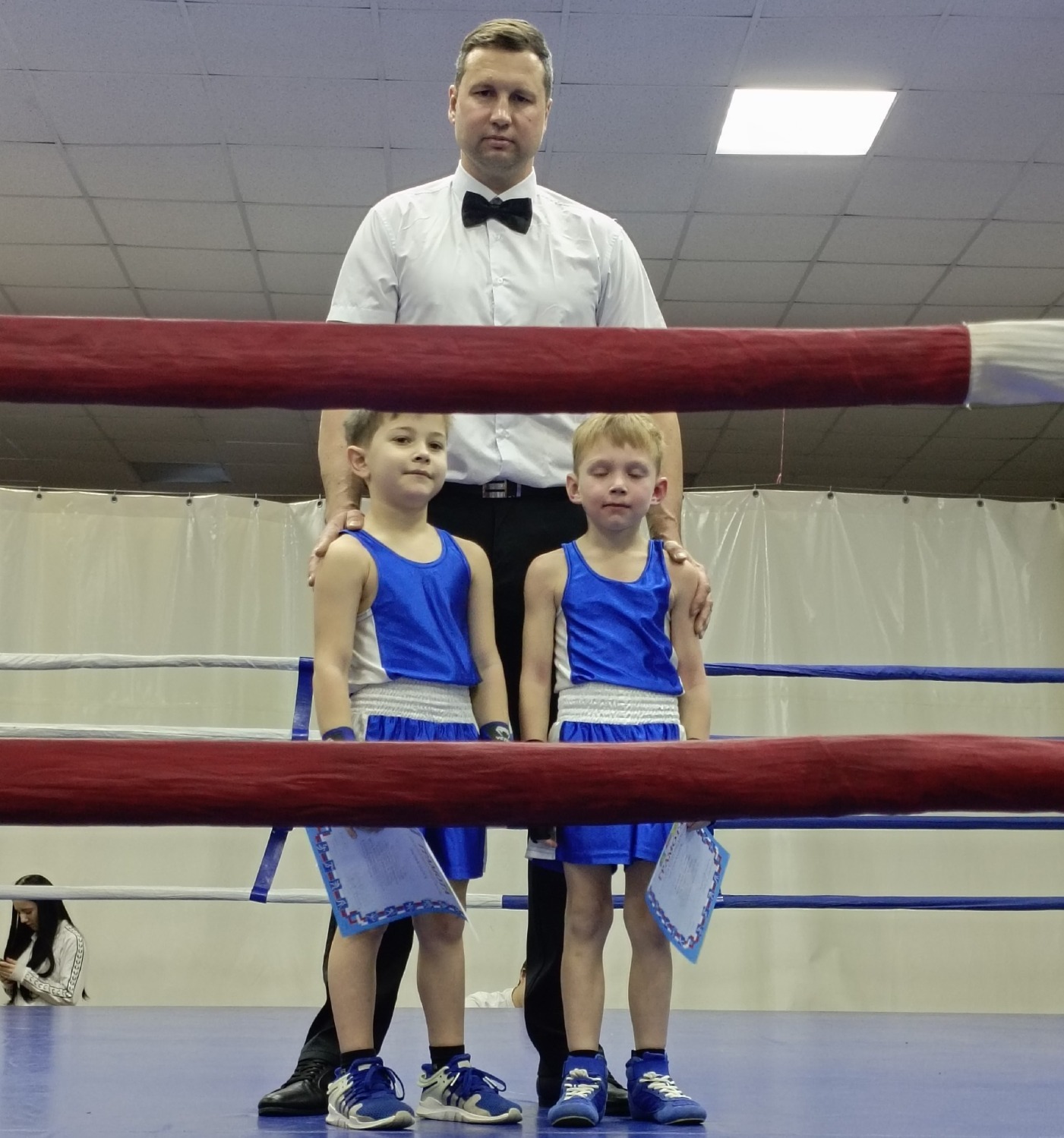 — В результате прошло 28 финальных поединков, которые выявили сильнейших. Выкладывались по полной. Боксировали и новички, и опытные ребята. Были самые маленькие, которые хорошо показали себя. Две пары девочек встретились на ринге. Поединки их были очень азартными, и все болельщики поддерживали и болели за них, — сказал тренер отделения «Бокс» ДЮСШ города Уварово Александр Гунбин.